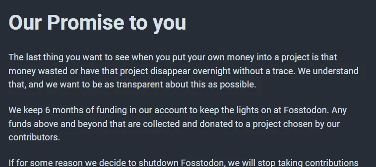 We keep 6 months of funding in our account to keep the lights on at Fosstodon